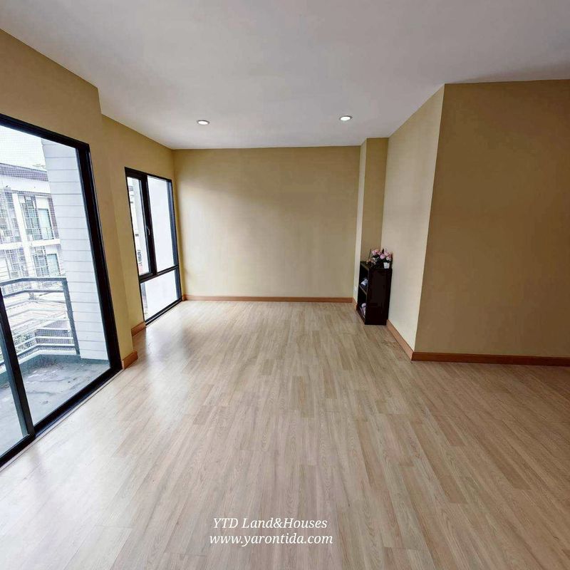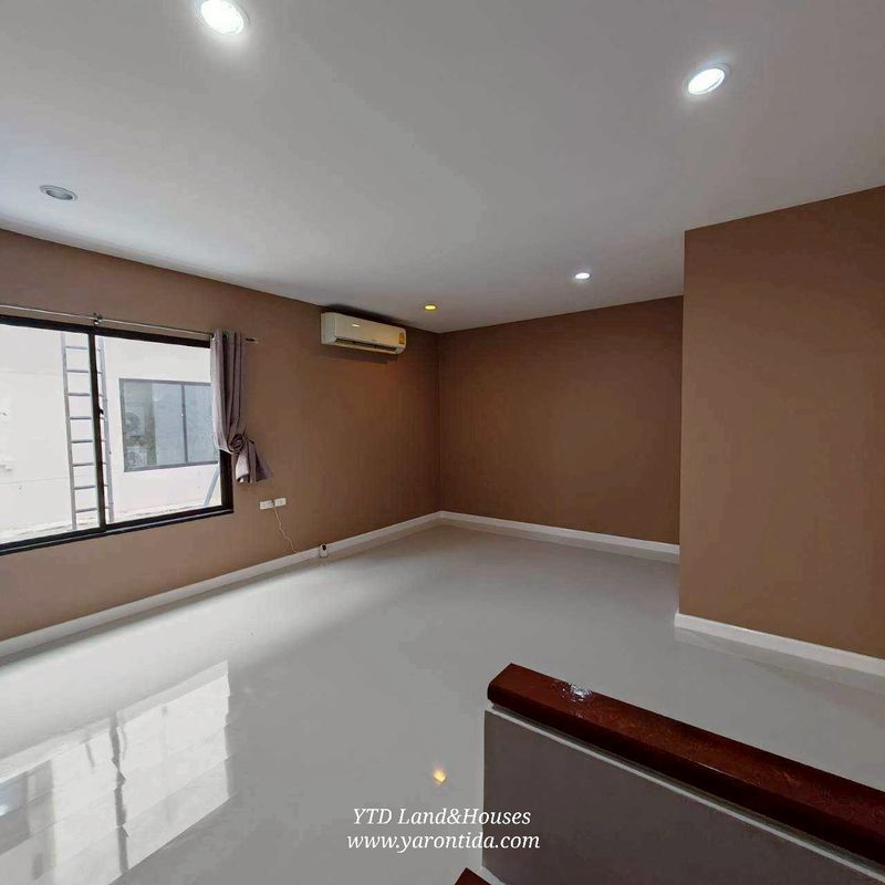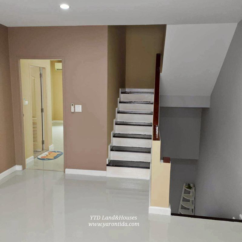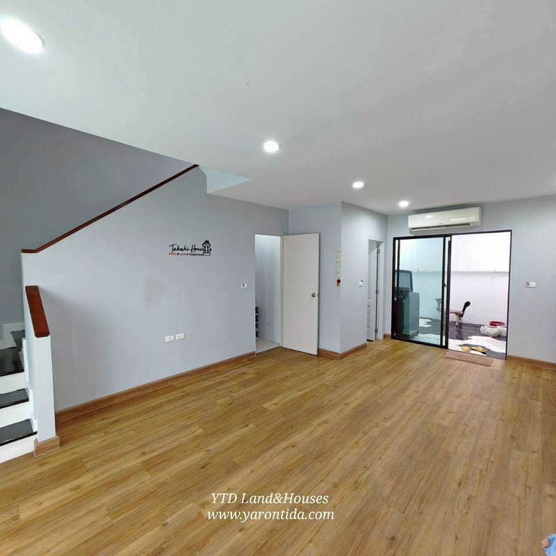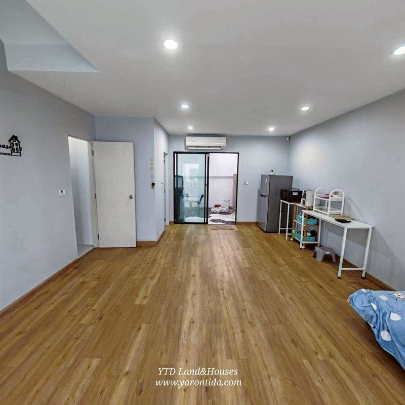 For sale 3-storey townhouse, iField Bangna, the front of the house faces north, providing shade all the time. Beautiful house ready to live in, can be used as a home office, can park 2 cars and still has a common parking lot. The back of the house has a roof and has a bird net. Changed the electric meter to support the electric car charging system.