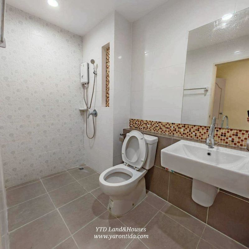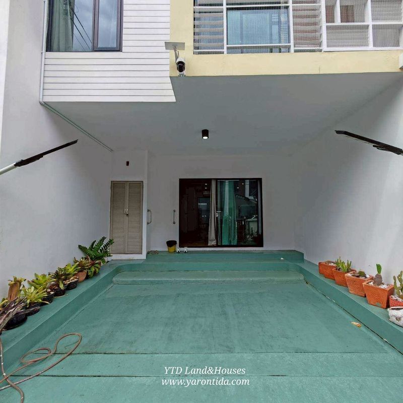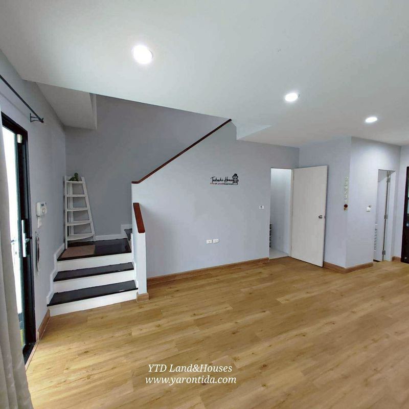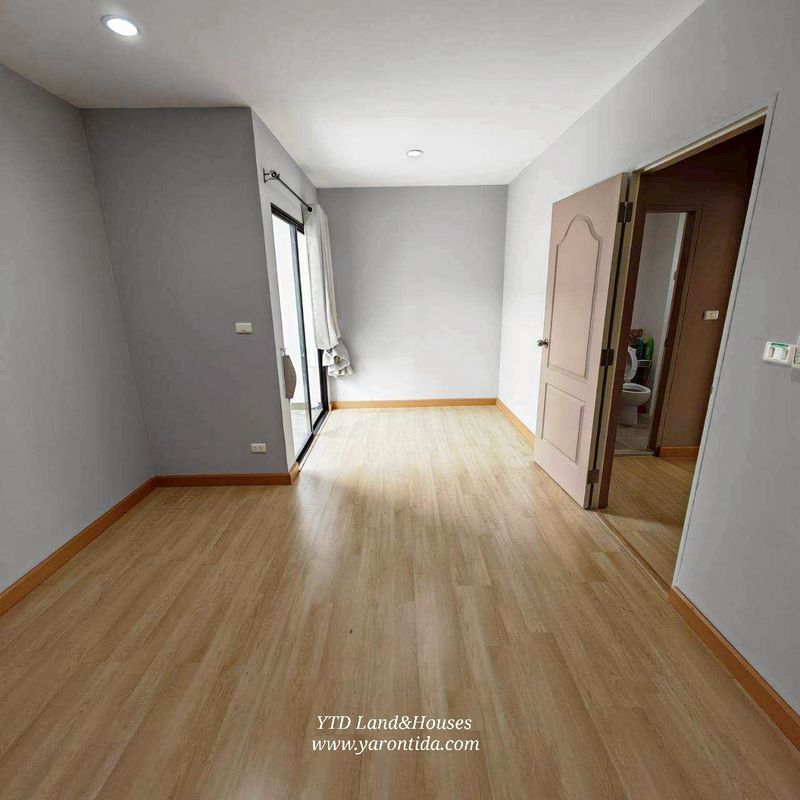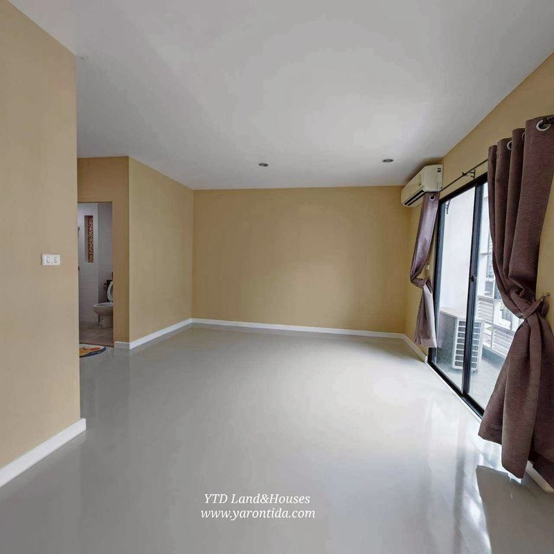 For sale 3-storey townhouse, iField Bangna, the front of the house faces north, providing shade all the time. Beautiful house ready to live in, can be used as a home office, can park 2 cars and still has a common parking lot. The back of the house has a roof and has a bird net. Changed the electric meter to support the electric car charging system.