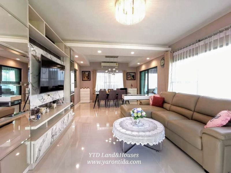 ตกแต่งพร้อมเข้าอยู่: ห้องน้ำแยกโซนเปียกและแห้ง เครื่องทำน้ำอุ่น, ห้องครัว พร้อมเครื่องดูดควัน, ตู้เย็น, ซิ้งค์, จอดรถได้ 2 คัน, สวนสวย พร้อมมุมส่วนตัวนั่งชิงช้าชมสวน