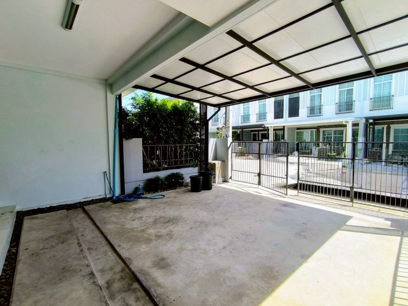 For sale 2-story townhome near Mega Bangna, best location in this area, Indy 2 Bangna-Ramkhamhaeng 2, the front of the house faces south, the front has a carport awning already installed.