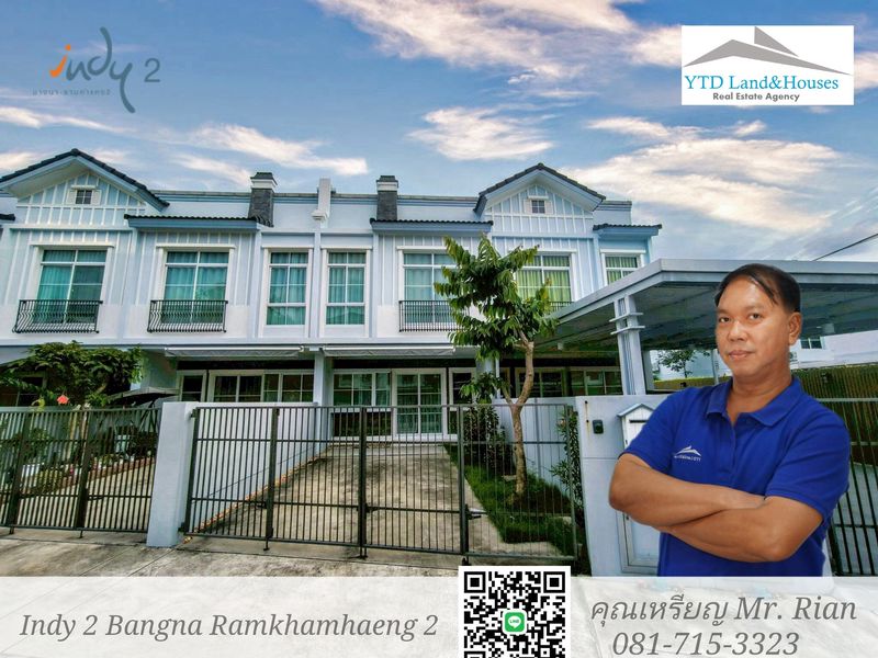 For sale 2-storey townhouse in Indy 2 Bangna-Ramkhamhaeng 2, the front of the house faces north, located in a private zone near the club, only 150 meters away, the front of the house is deep enough to park up to 2 small cars.