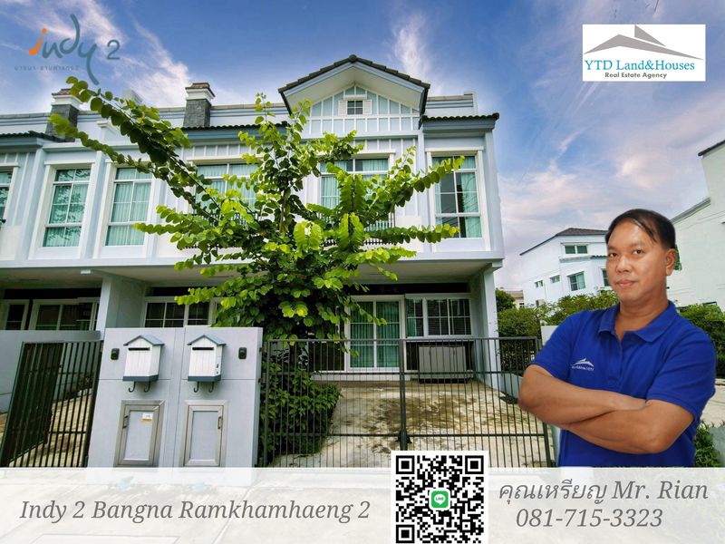 ขาย/ให้เช่า ทาวน์โฮม 2 ชั้น ใกล้เมกา บางนา ทำเลดีที่สุดในย่านนี้ โครงการ Indy 2 บางนา-รามคำแหง 2 บ้านแปลงมุม ใกล้สวนหย่อม บ้านหันทิศเหนือ ให้เช่าพร้อมชุดครัว ผ้าม่าน และเครื่องปรับอากาศ