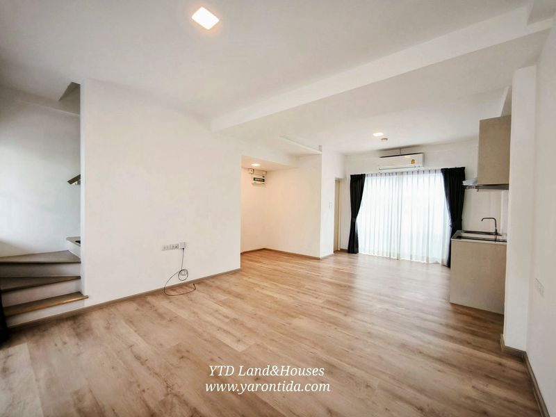 For sale/rent 2-storey townhouse near Mega Bangna, best location in the area, Indy 2 Bangna-Ramkhamhaeng 2, corner house, near the garden, house facing north, for rent with kitchen set, curtains and air conditioner.