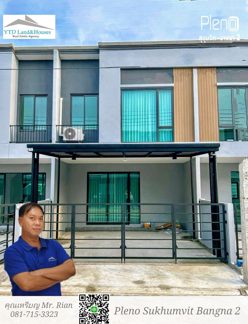 ให้เช่า ทาวน์โฮม 2 ชั้น ในโครงการ พลีโน สุขุมวิท-บางนา 2 ทำเลดี อยู่ใกล้เมกาบางนาเพียง 3 นาที พร้อมด้วยเฟอร์นิเจอร์ครบครัน บ้านหันหน้าทางทิศเหนือ ,กันสาดด้านหน้าและหลังบ้าน บ้านพร้อมอยู่อาศัย