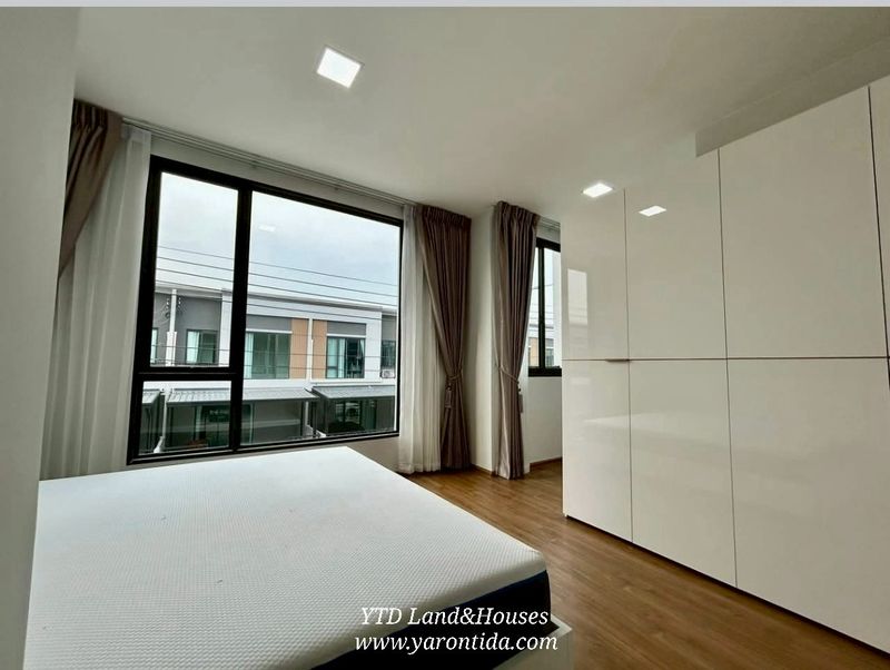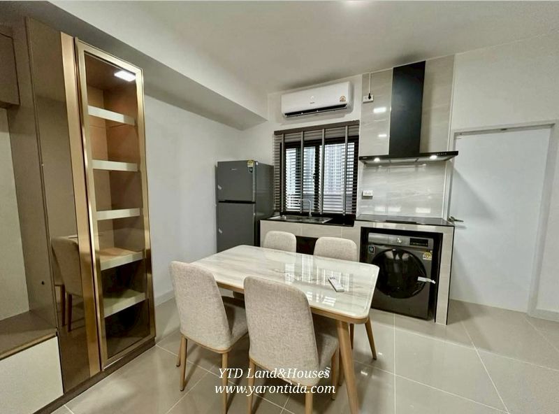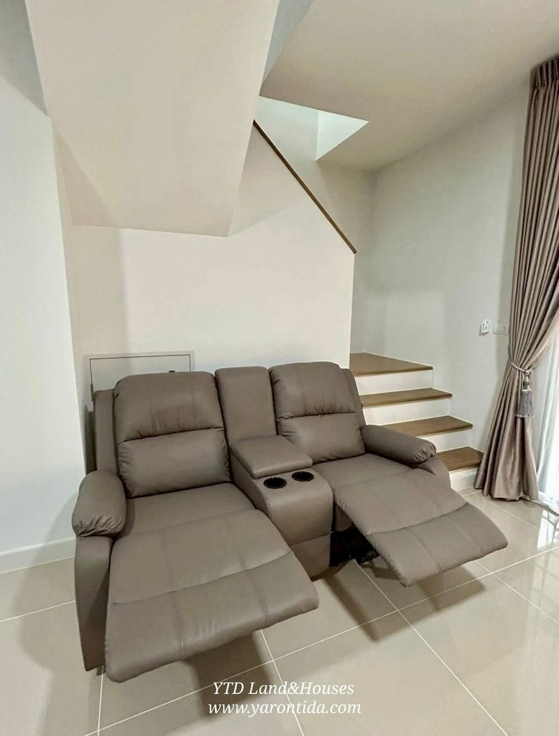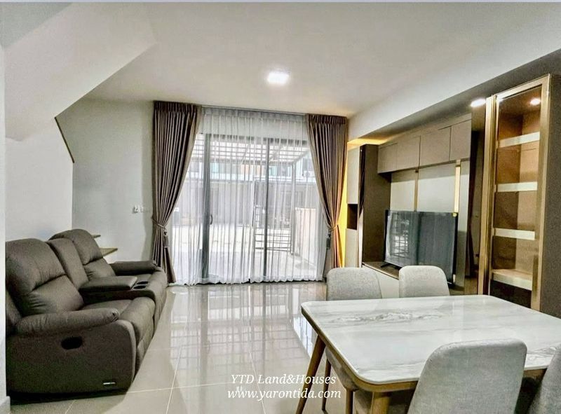 For rent, 2-storey townhouse in the Pleno Sukhumvit-Bangna 2, good location, only 3 minutes from Mega Bangna, fully furnished, house facing north,there is an awning at the front and back of the house , ready to move in.