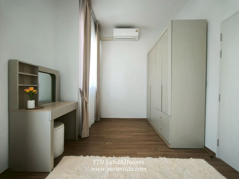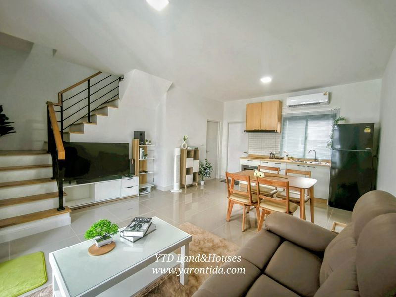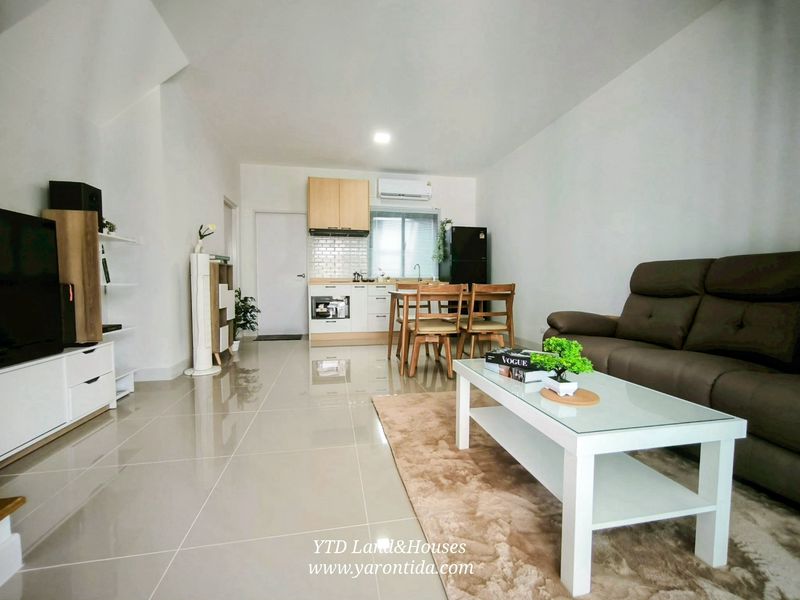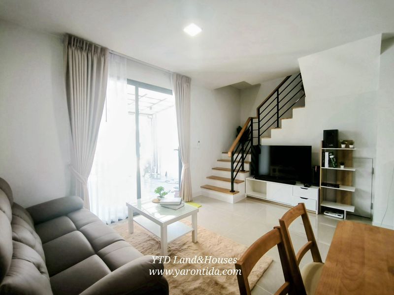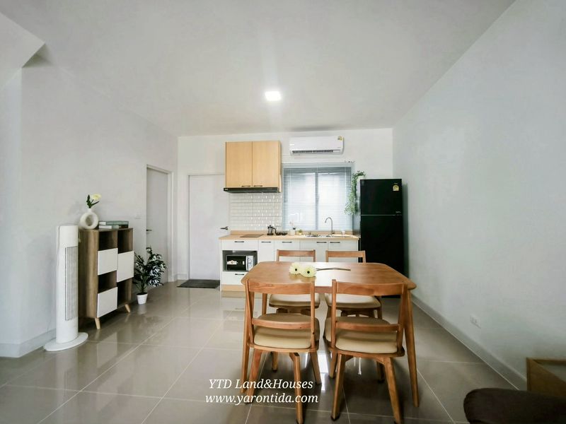 2-story townhome for rent in the Pleno Sukhumvit-Bangna 3 the front of the house is 6.65 meters wide, can park 2 cars, close to Mega Bangna and can travel on many routes. Both Bangna-Trad and Buanakarin Road, Nam Daeng,