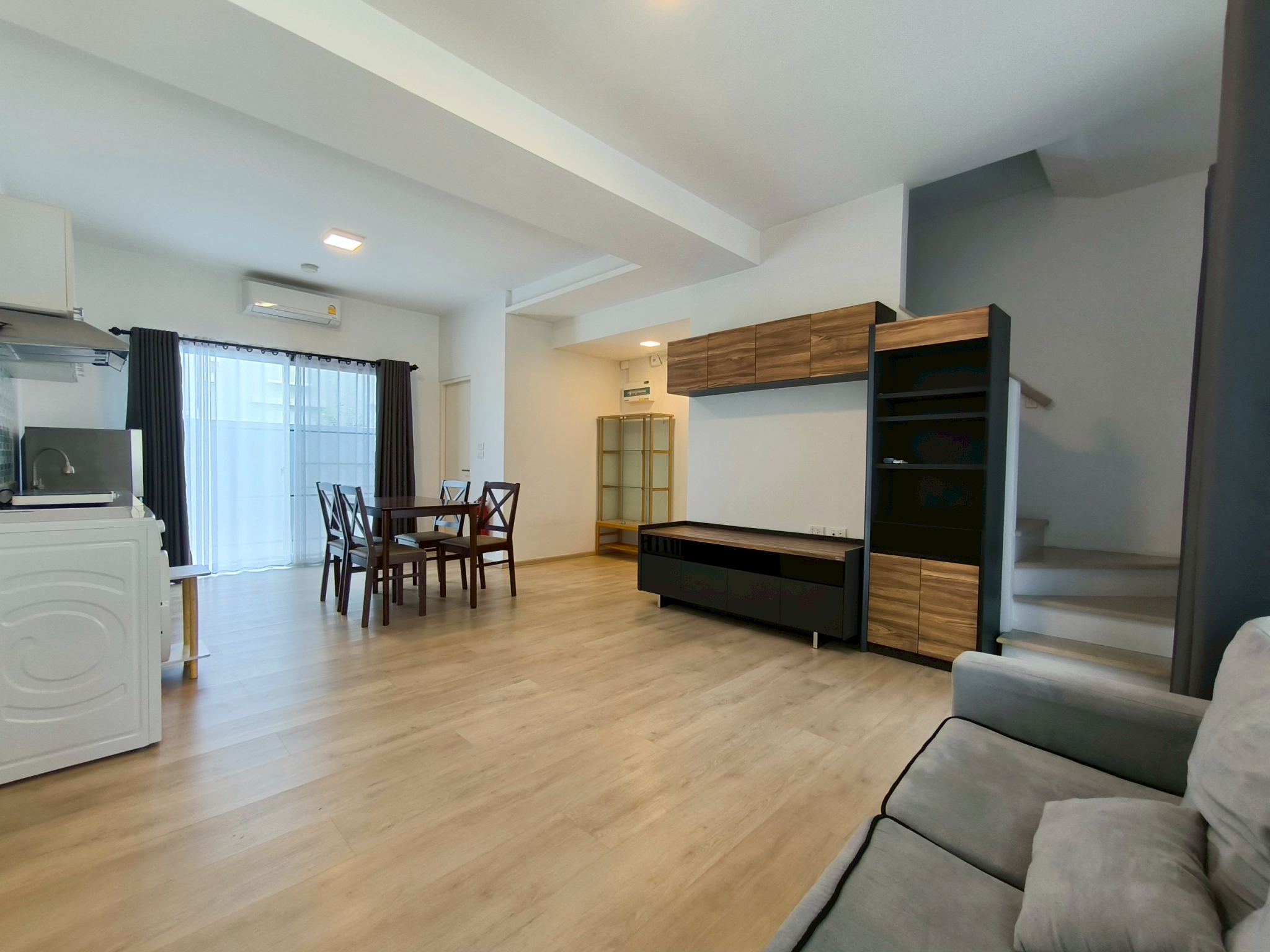 2-story townhome for rent, near Mega Bangna, best location in the area, Indy 4 Bangna km. 7 ,Located just 1 km. from Mega Bangna, can enter and exit in many ways, including Bangna-Trad, Srinakarin, Theparak, Nam Daeng, fully furnished. Ready to move in.
