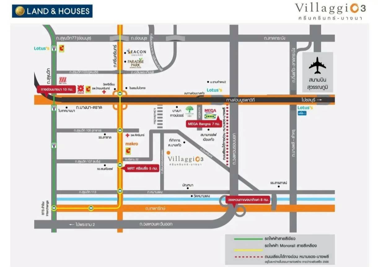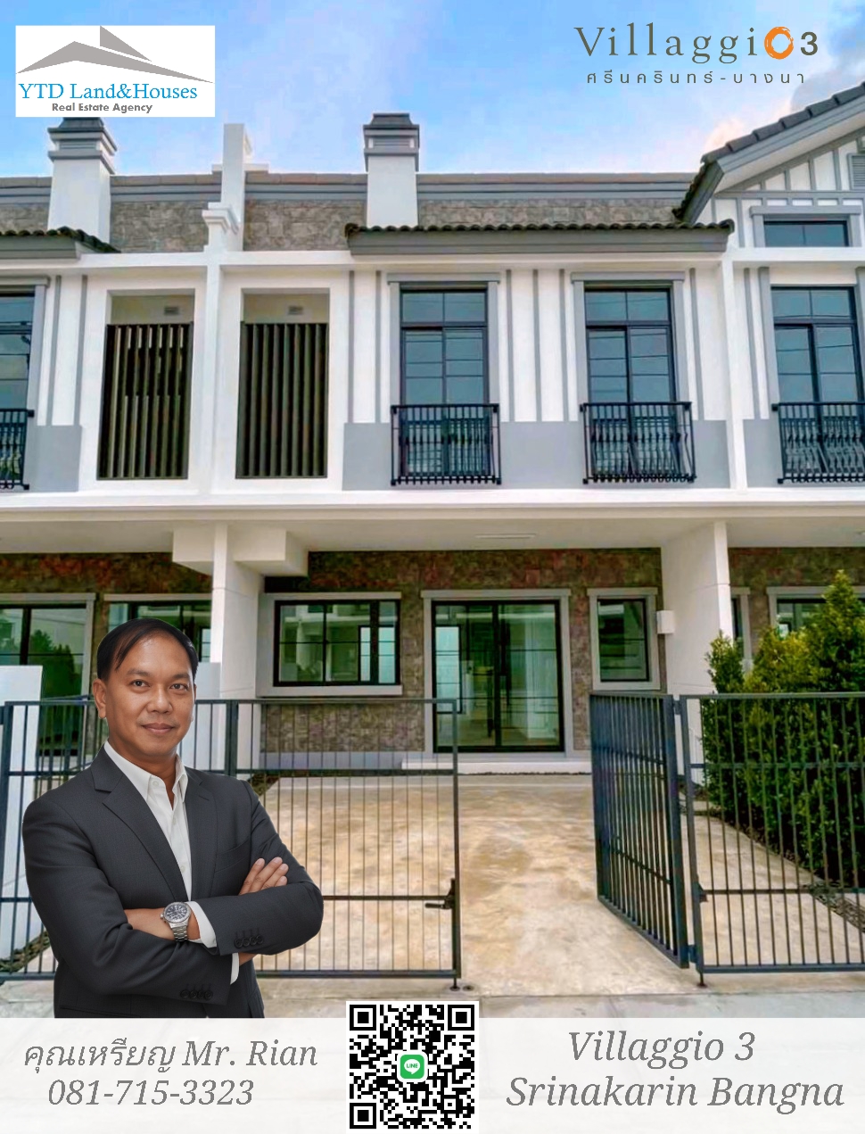 ให้เช่า ทาวน์โฮมส์  2 ชั้น โครงการวิลลาจจิโอ 3 ศรีนครินทร์-บางนา เข้าออกได้หลายเส้นทาง ทั้งบางนา-ตราด กม.5 , ศรีนครินทร์ (หนามแดง) , เทพารักษ์ เดินทางไปเมกาบางนาเพียงไม่กี่นาที (เลียบทางด่วน) , บ้านสวยพร้อมอยู่อาศัย