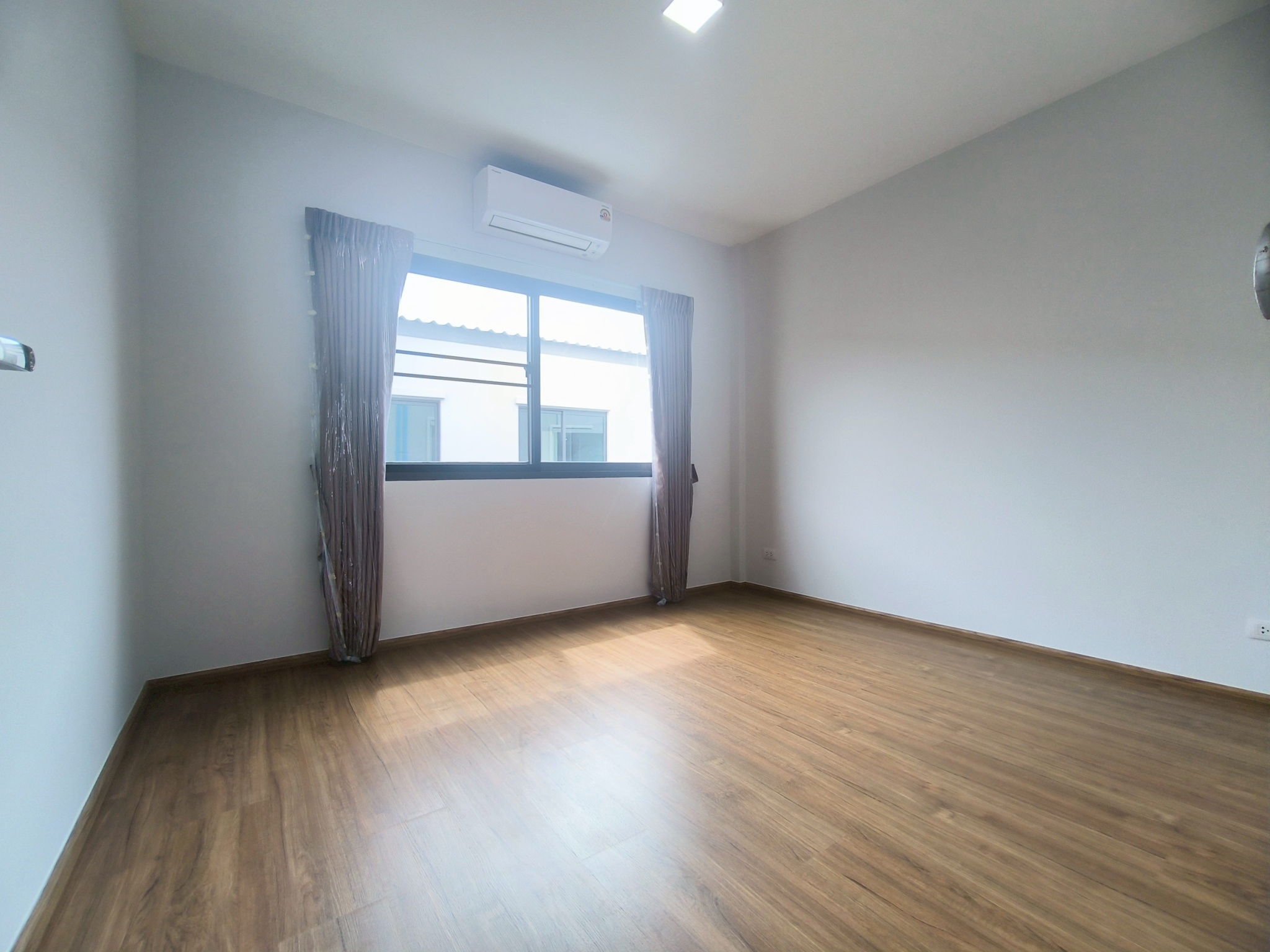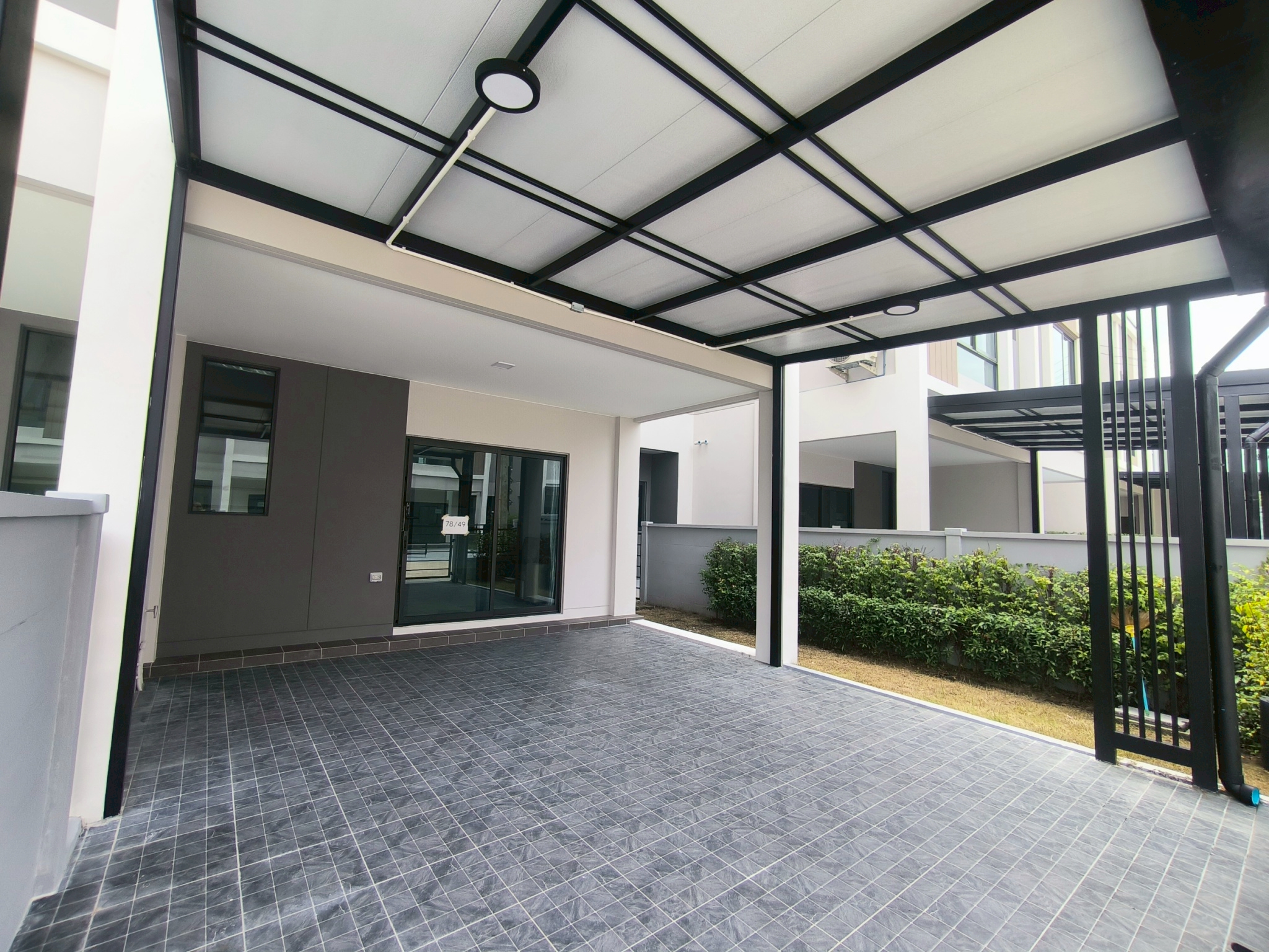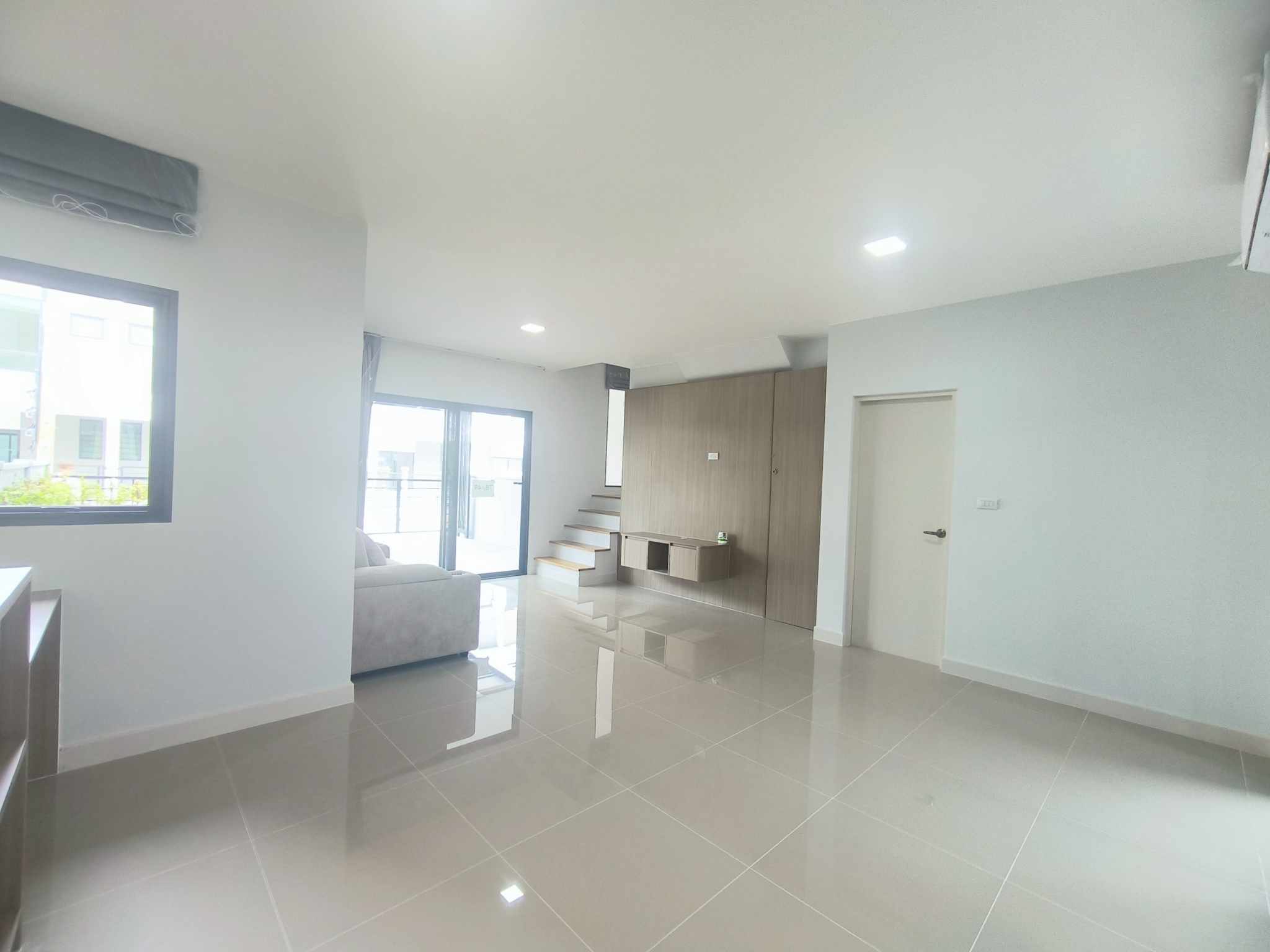 For rent: 2-story townhome in the Pleno Sukhumvit-Bangna 3 The front of the house is 6.65 meters wide, can park 2 cars, and also has a garden corner for planting trees. The location is near Mega Bangna and can travel via many routes, including Bangna-Trad and Buanakarin Road, Nam Daeng, Theparak. The front has a carport roof, the back has a roof extension and a kitchen is complete. Beautiful house, ready to move in.