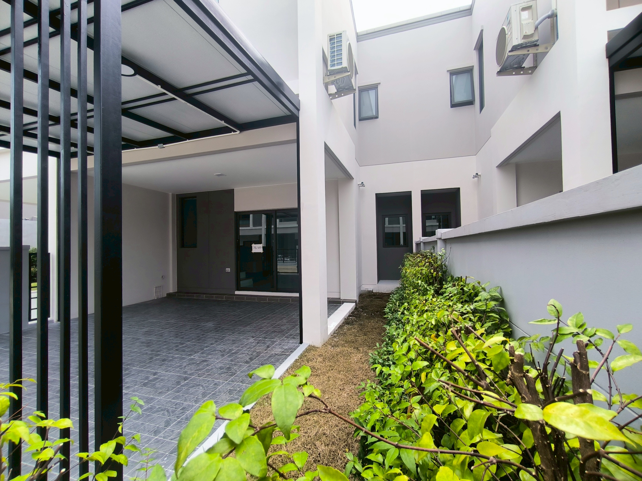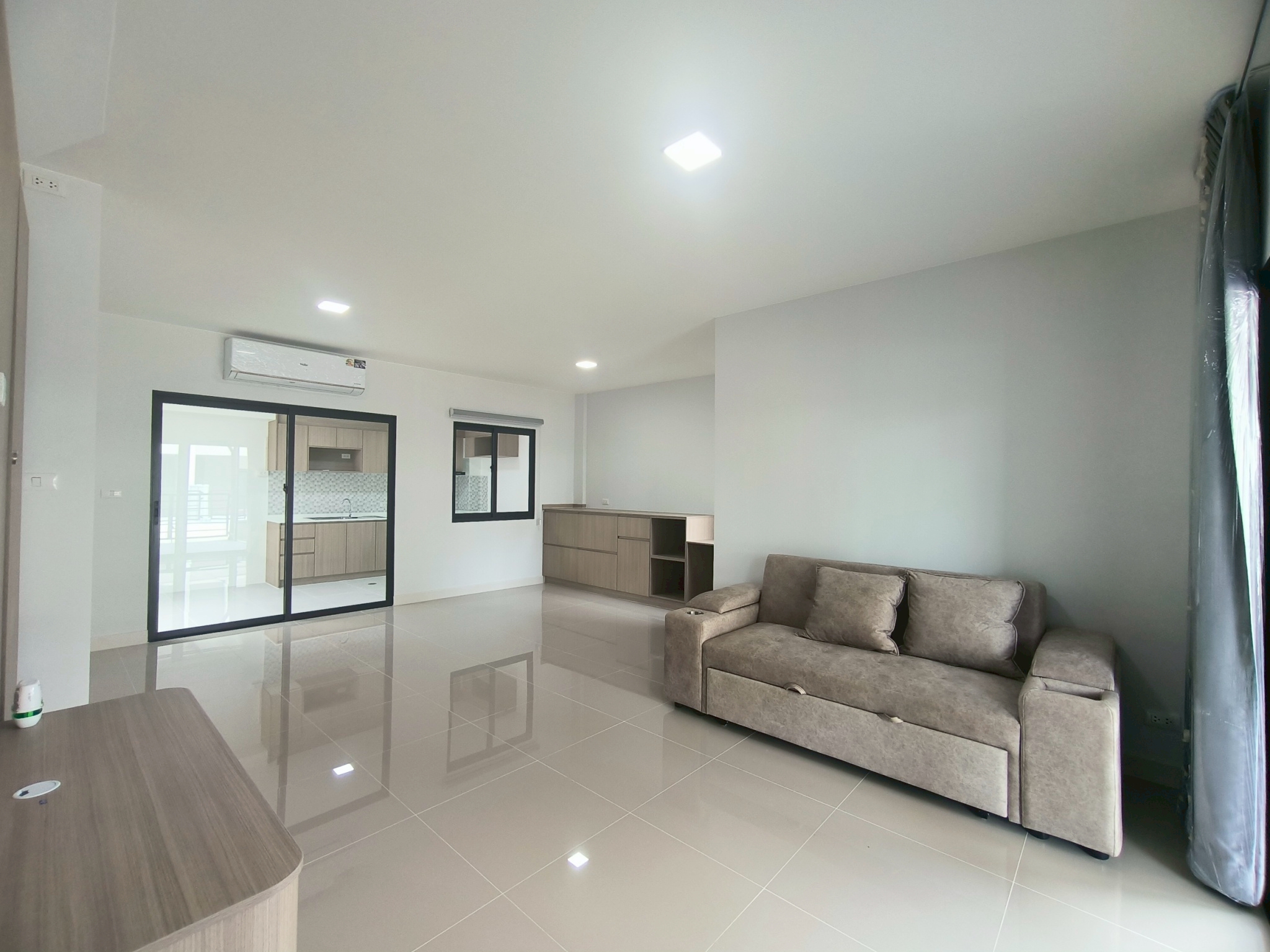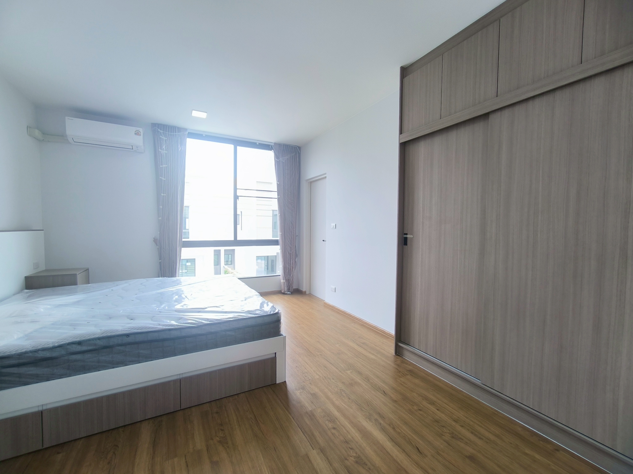 For rent: 2-story townhome in the Pleno Sukhumvit-Bangna 3 The front of the house is 6.65 meters wide, can park 2 cars, and also has a garden corner for planting trees. The location is near Mega Bangna and can travel via many routes, including Bangna-Trad and Buanakarin Road, Nam Daeng, Theparak. The front has a carport roof, the back has a roof extension and a kitchen is complete. Beautiful house, ready to move in.