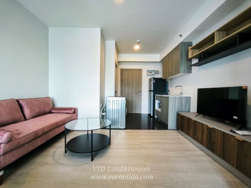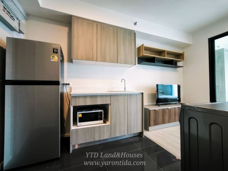 For rent Condo A Space Mega , 6A floor, total usable area 28 square meters, size 1 bedroom, 1 bathroom, 1 living room, with furniture such as bed + mattress, wardrobe, sofa, air conditioner, refrigerator, water heater, microwave and washing machine, complete, new room, never been lived in.